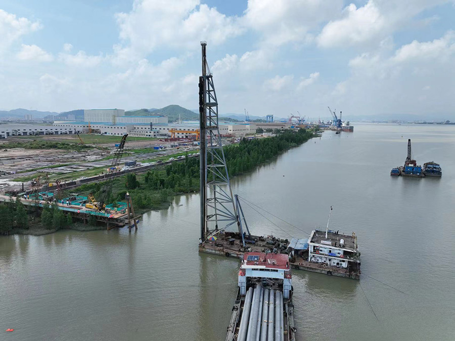 6月12日上午,隨著打樁機(jī)一聲轟鳴,華津金屬產(chǎn)業(yè)園萬噸級(jí)碼頭項(xiàng)目首根鋼管樁成功入海,標(biāo)志著華津黑色金屬碼頭項(xiàng)目主體工程建設(shè)進(jìn)入實(shí)質(zhì)性施工階段。